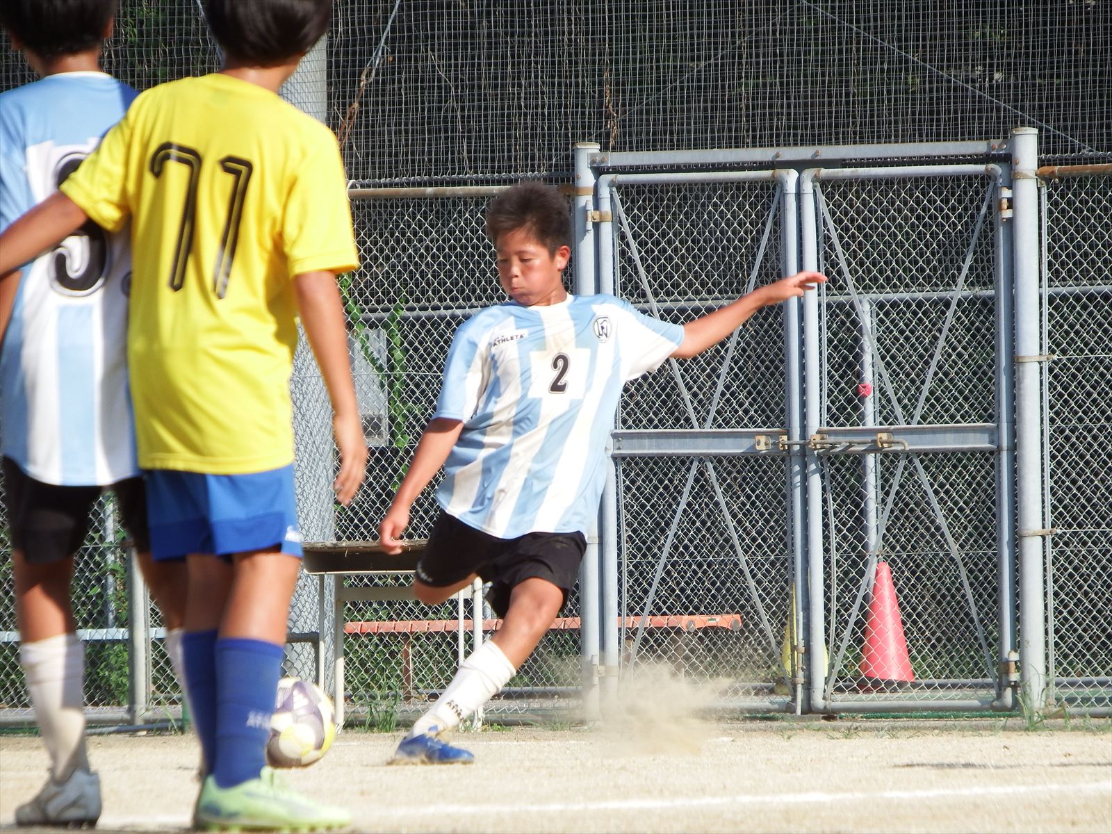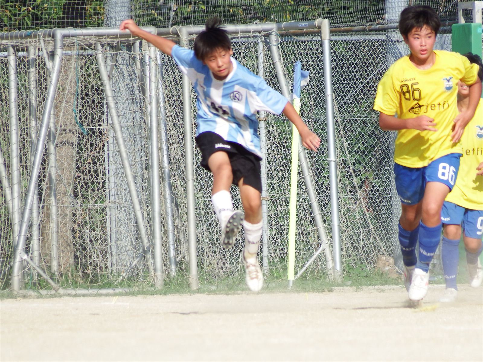 さて今回の試合ですが、前回よりも格段に走れていました。相手のボールコントロールが上手く、一人で奪いに行ってもかわされる場面は多々ありましたが、一人でダメなら二人、三人と連動してボールを奪いに行く姿勢や、味方を助けるために走り込むプレーが随所に見られ大きな改善が感じられました。