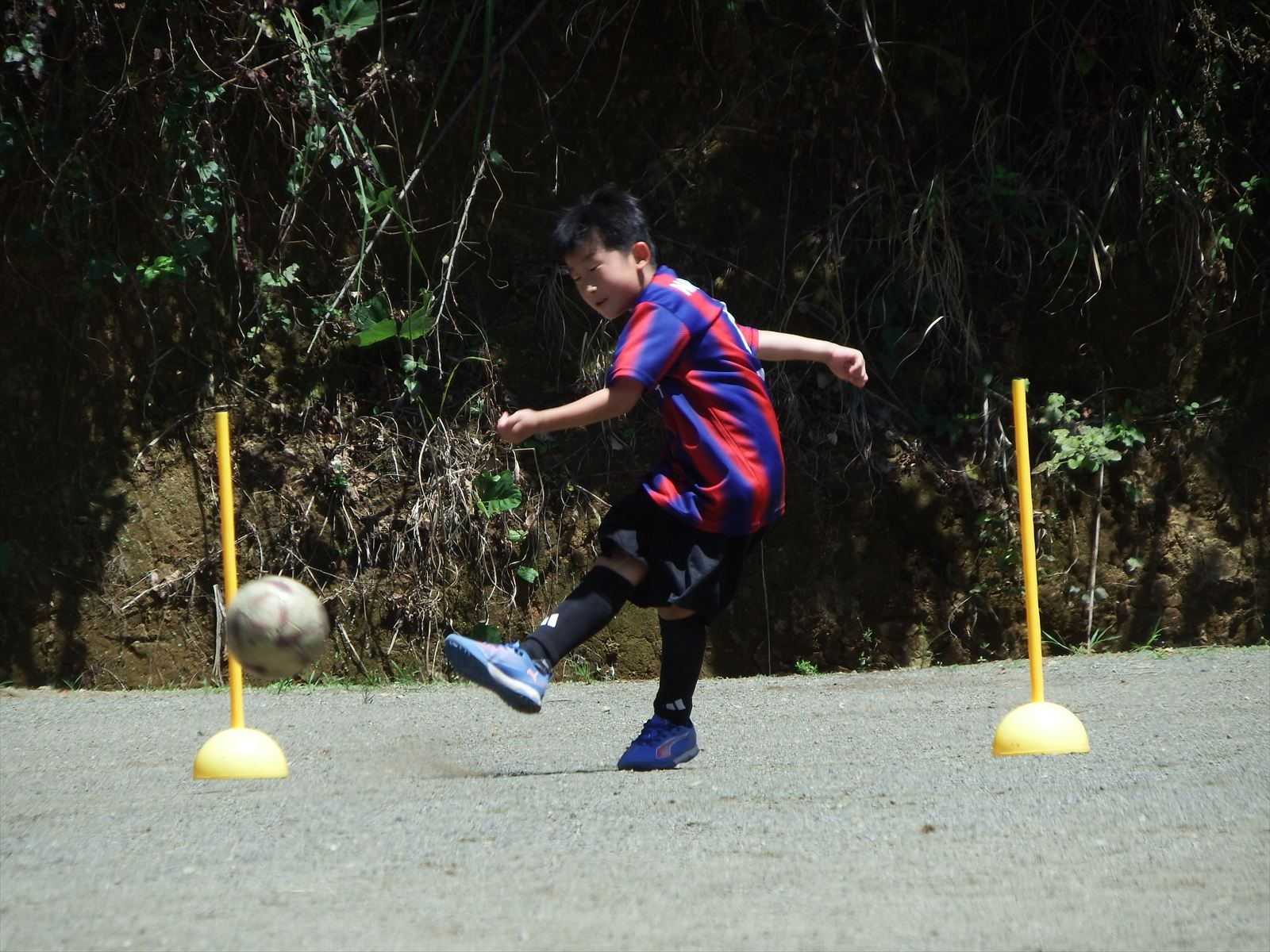 この日は、合宿のテーマである「止める・蹴る」の精度を向上させるため、午前中は様々なパターンの練習に励みました。そして午後には、練習の成果を実践で発揮できるよう、試合形式のトレーニングを行いました。