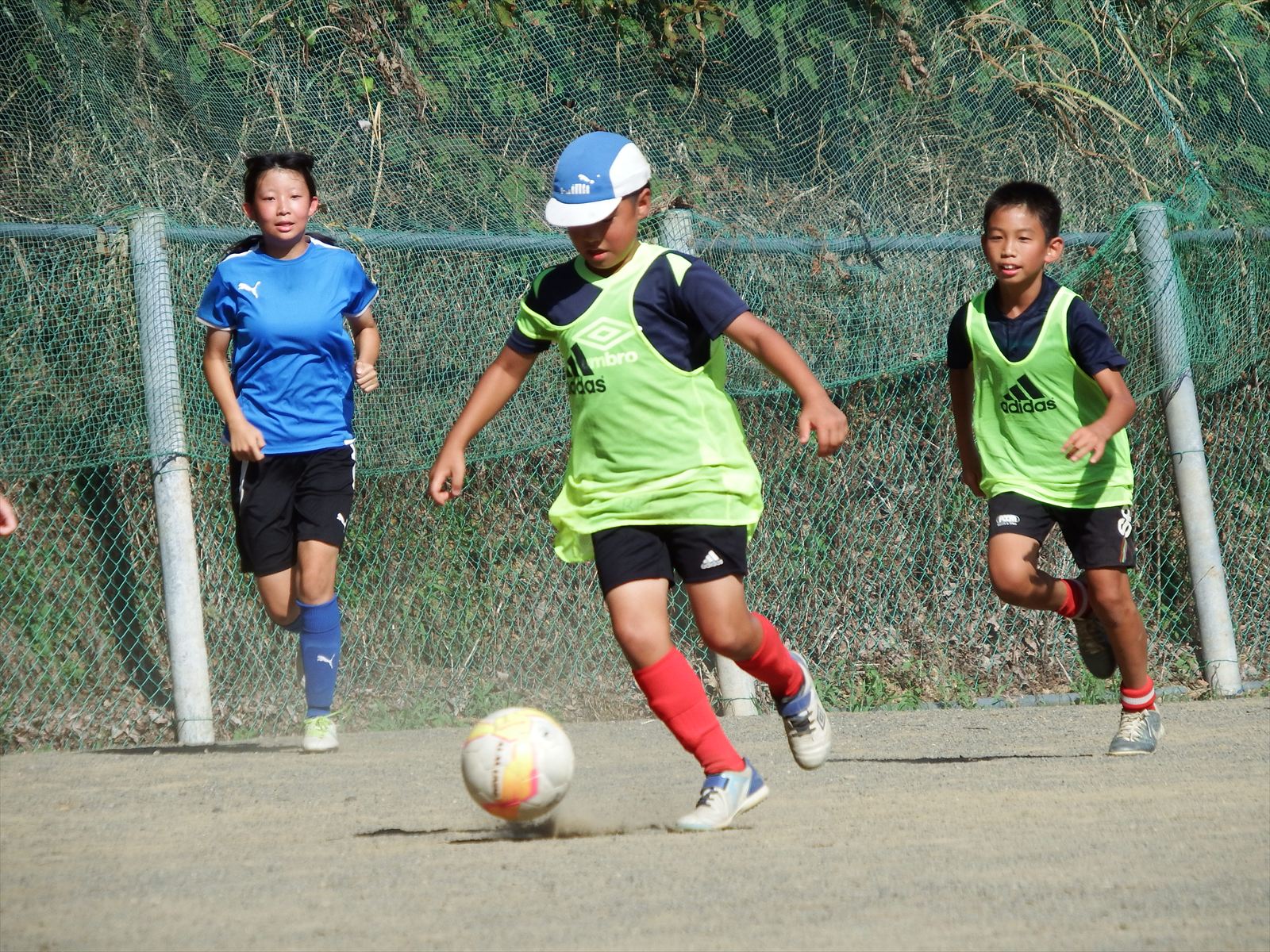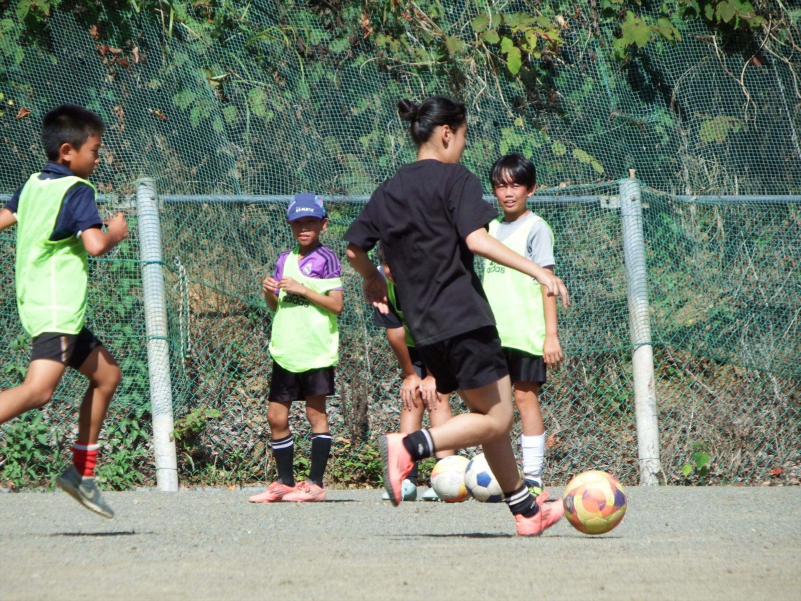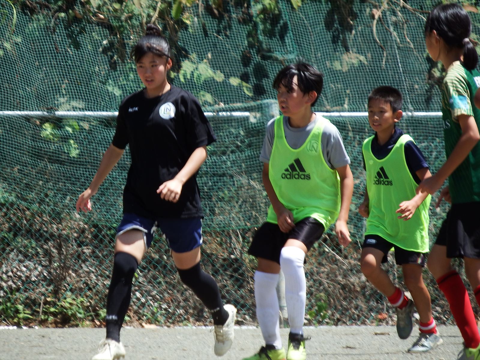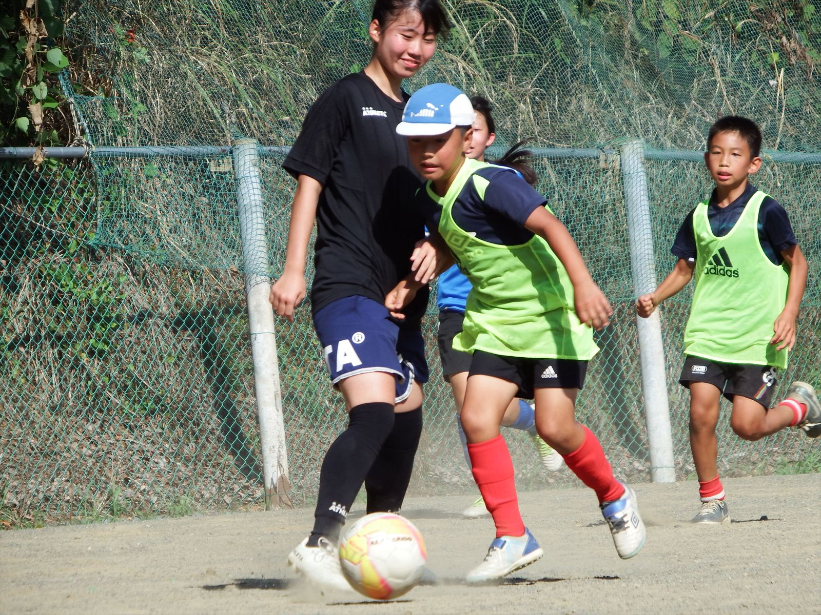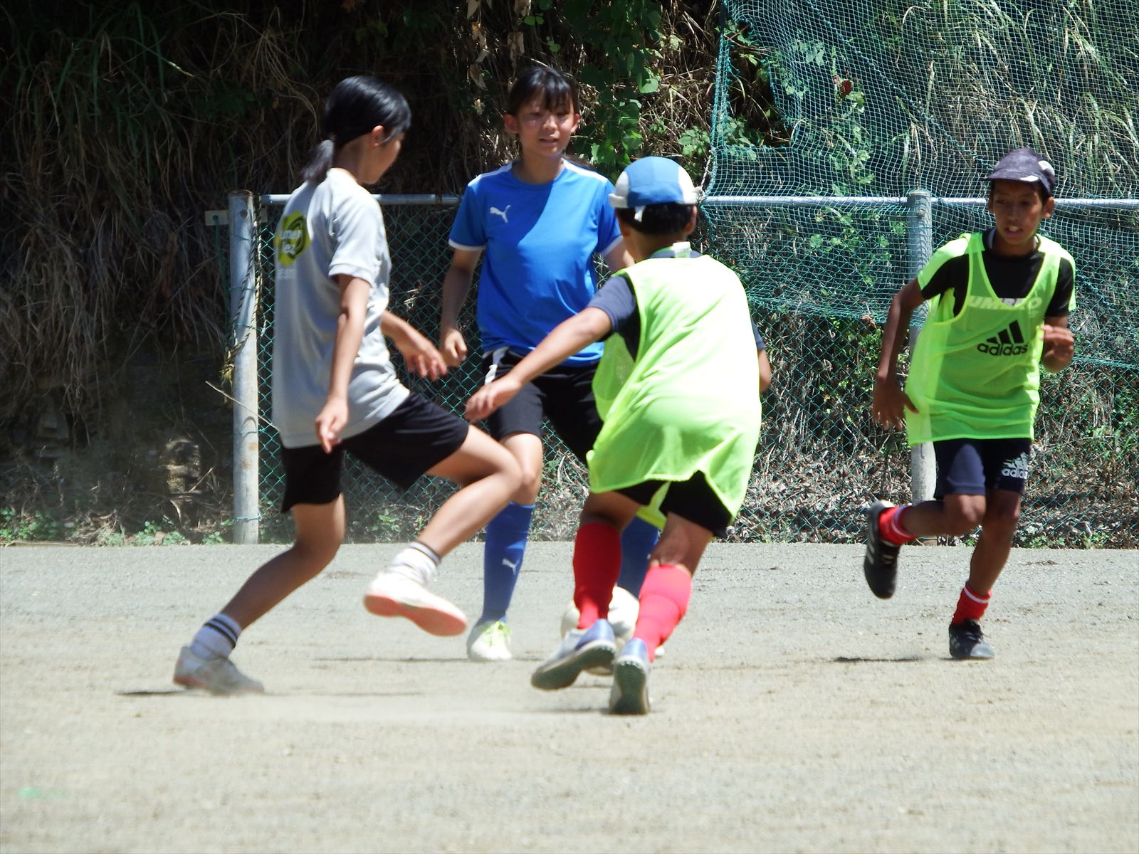 フィジカルで勝る中学1年生のあやかさんやりこさんに対し、6年生が必死に食らいつく場面が何度も見られました。その白熱した戦いがチーム全体にも広がり、全員が全力でプレーするようになったのは素晴らしい光景でした。