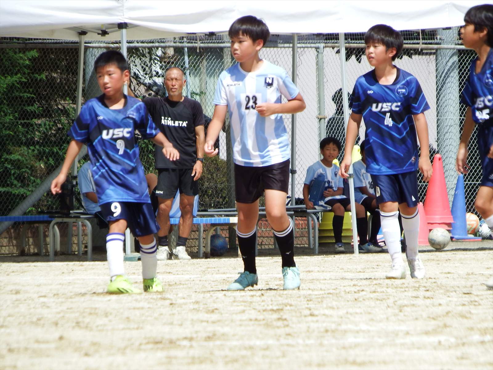 試合前には、他のチームのプレーをみんなで見て「ダイレクトパスの成功率の低さ」や「ファーストタッチの重要性」についてミーティング。その甲斐あってか、プレーの精度は向上し、ボールコントロールや周囲の状況確認など、前日には見られなかった良いプレーも見られました。